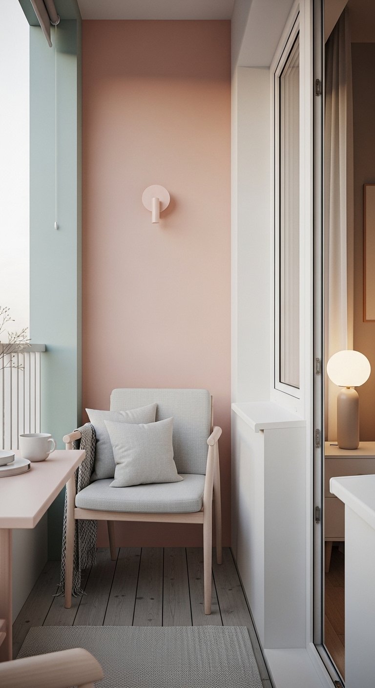 If you want something fresh and calming, use soft pastel shades like light pink, pale blue, or mint green. Keep the base neutral and add color through cushions, throws, or small decor pieces. This keeps the space balanced and not overwhelming. Choose light materials like cotton or linen so everything feels airy. A simple chair or a small bench works well with this palette. Add a few flowers or plants to bring in a natural touch. This setup feels bright during the day and soft in the evening, making it a comfortable space to spend time in.