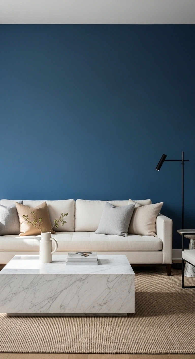 1. Matte Cobalt Blue Behind a Cream Sofa