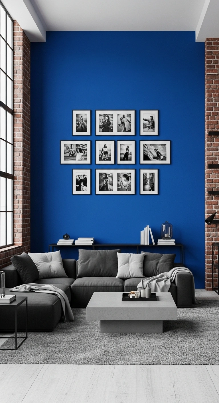 16. Cobalt Blue Accent Wall with Black and White Photography