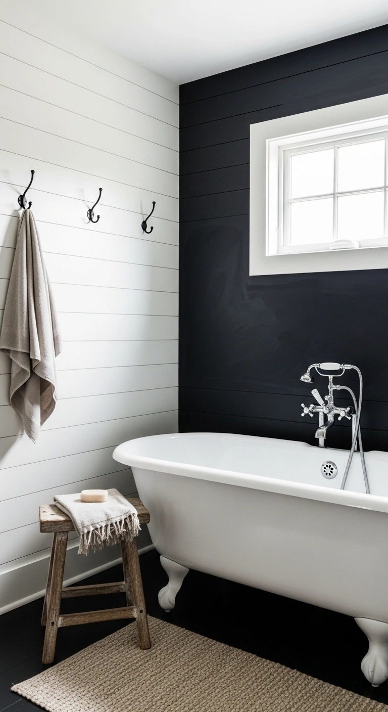 13. Combine White Shiplap Walls with Black Accents