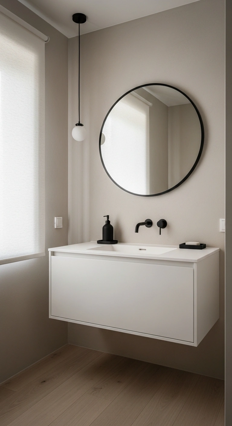Focus on contrast in finishes rather than color. Pair smooth stone counters with textured wall tiles. Use ribbed glass light fixtures for subtle detail. Keep the color palette simple but vary the surfaces. This technique makes even a small bathroom feel thoughtfully designed.