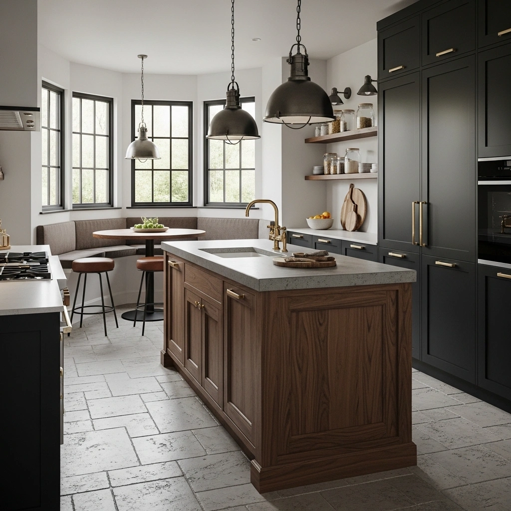 Mixing materials like wood, stone, and metal creates a layered and sophisticated look. Imagine a walnut island, concrete countertops, and brushed gold fixtures. Each material adds depth, while textures like rough stone or soft wood bring visual interest. This style feels modern yet approachable, creating a space that invites both cooking and socializing.