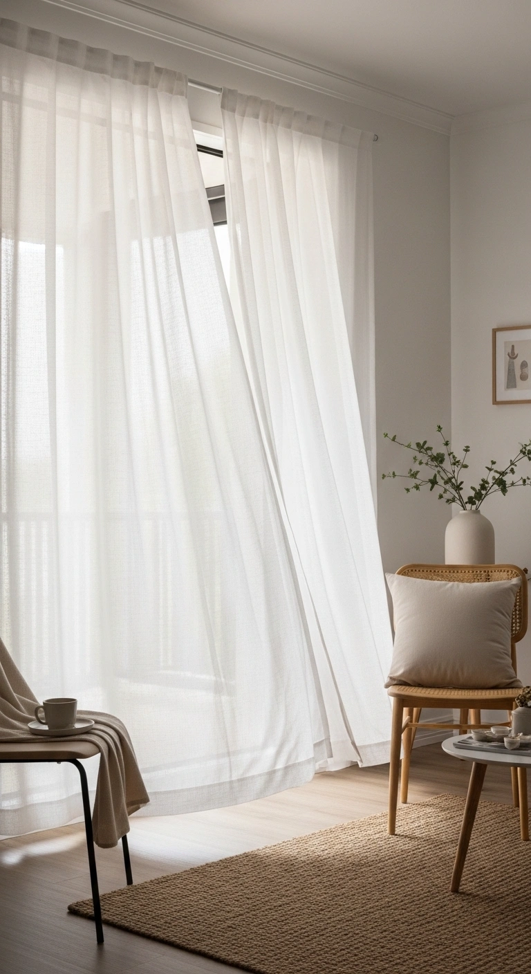Lightweight curtains that move with air create a soft and relaxed atmosphere. Even a small breeze can bring gentle motion, making the room feel fresh and alive.