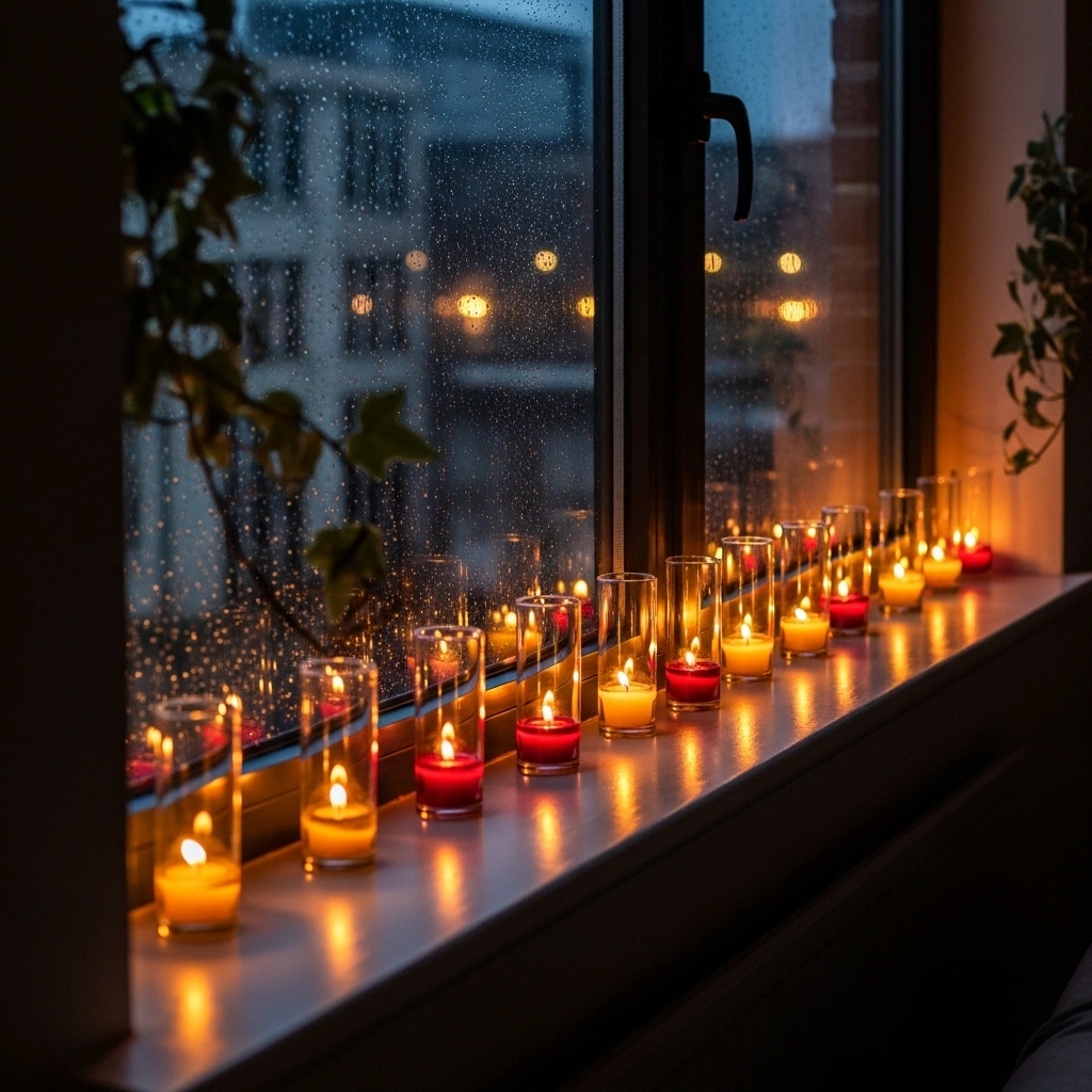 Space candles evenly for symmetry. Use flameless candles for safety. Add a light sheer curtain for softness. Keep color tones warm and cohesive. This simple setup transforms your evenings beautifully.