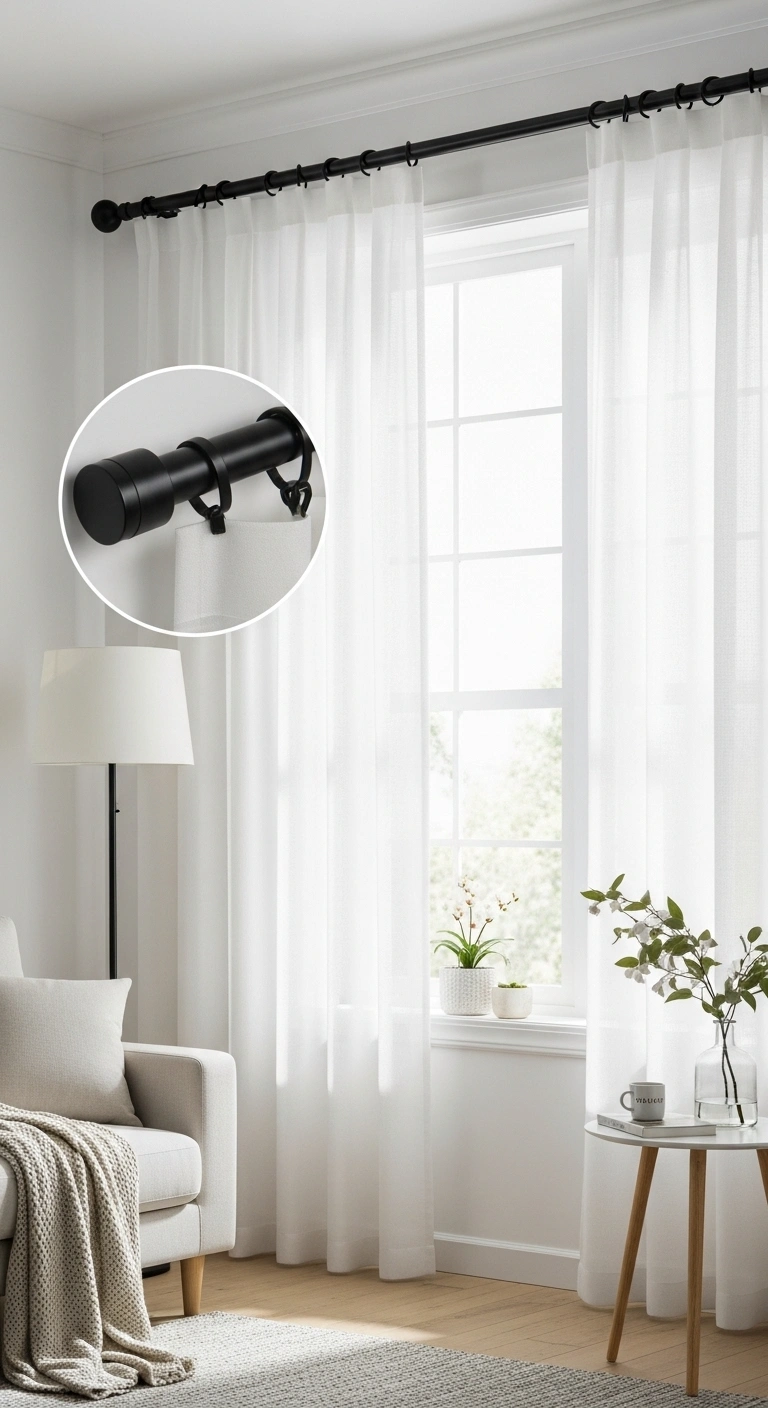 14. Black Curtain Rods for Subtle Contrast