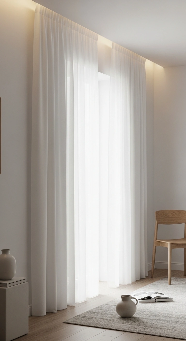 5. Ceiling-Mounted Curtains for Height Illusion