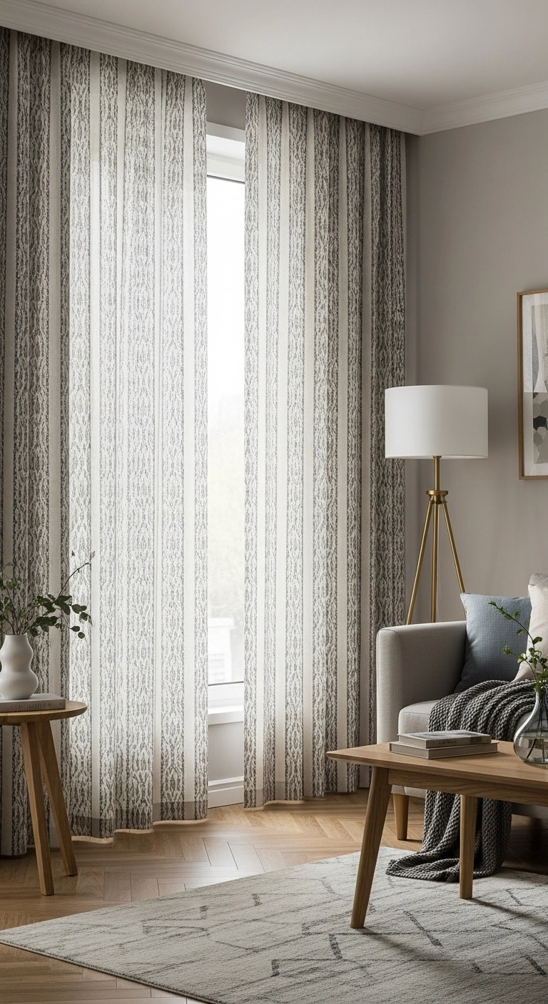 Patterned floor-to-ceiling curtains can become the focal point of your room. Choose subtle patterns like soft stripes, small florals, or geometric designs in muted tones. This adds visual interest without overwhelming the space.
