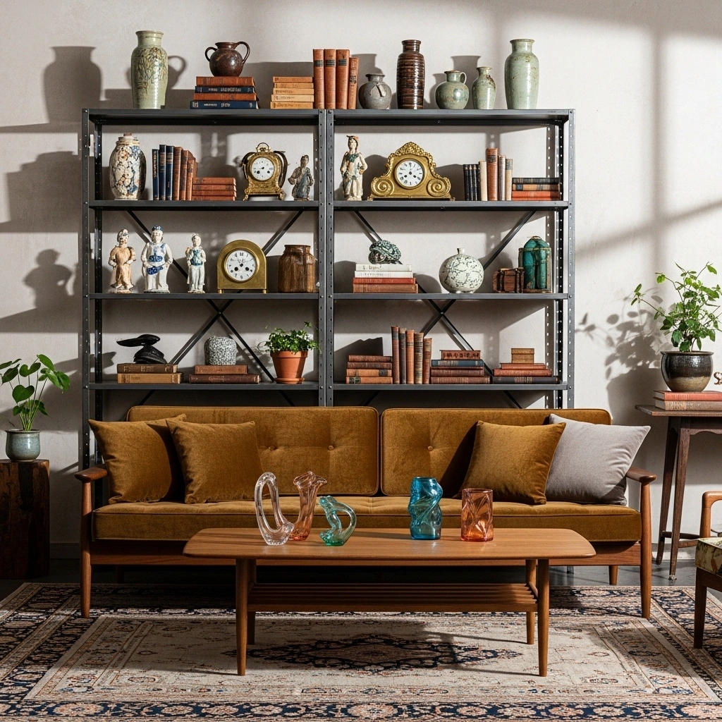 Objects with history give a living room character. Ceramic figurines, antique clocks, or vintage books on shelves tell stories that instantly add soul. Layering collectibles of different textures and heights keeps the display dynamic without feeling cluttered.