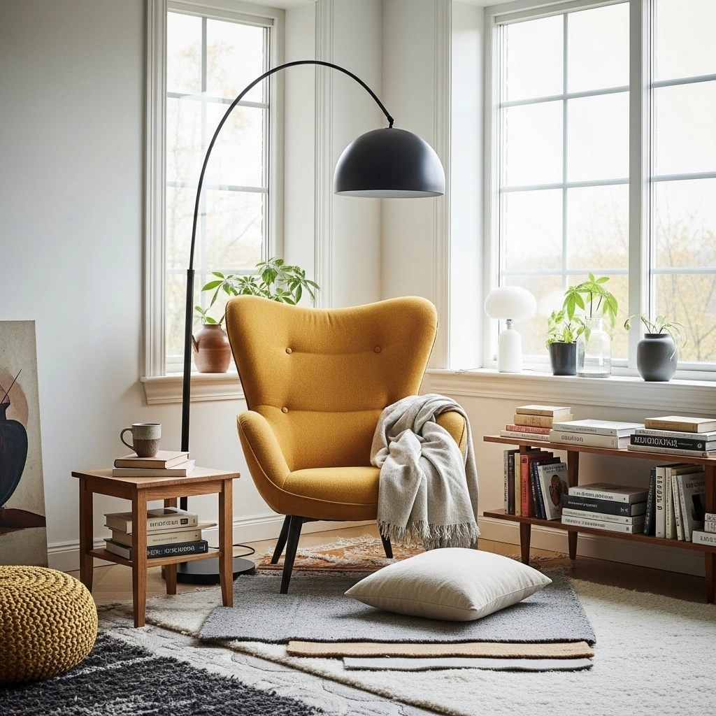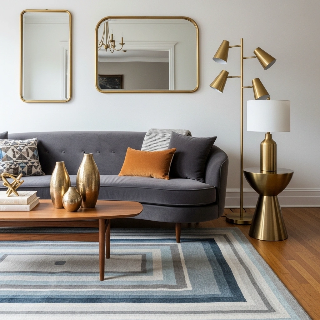 The elegance of mid-century design lies in its curves. Imagine a softly curved sofa in velvet or tweed, placed against paneled walls with warm light reflecting off the surface. The rounded lines create intimacy, encouraging conversation and comfort. Add a sculptural side table and a layered rug to anchor the area visually. The look feels nostalgic yet effortlessly sophisticated.