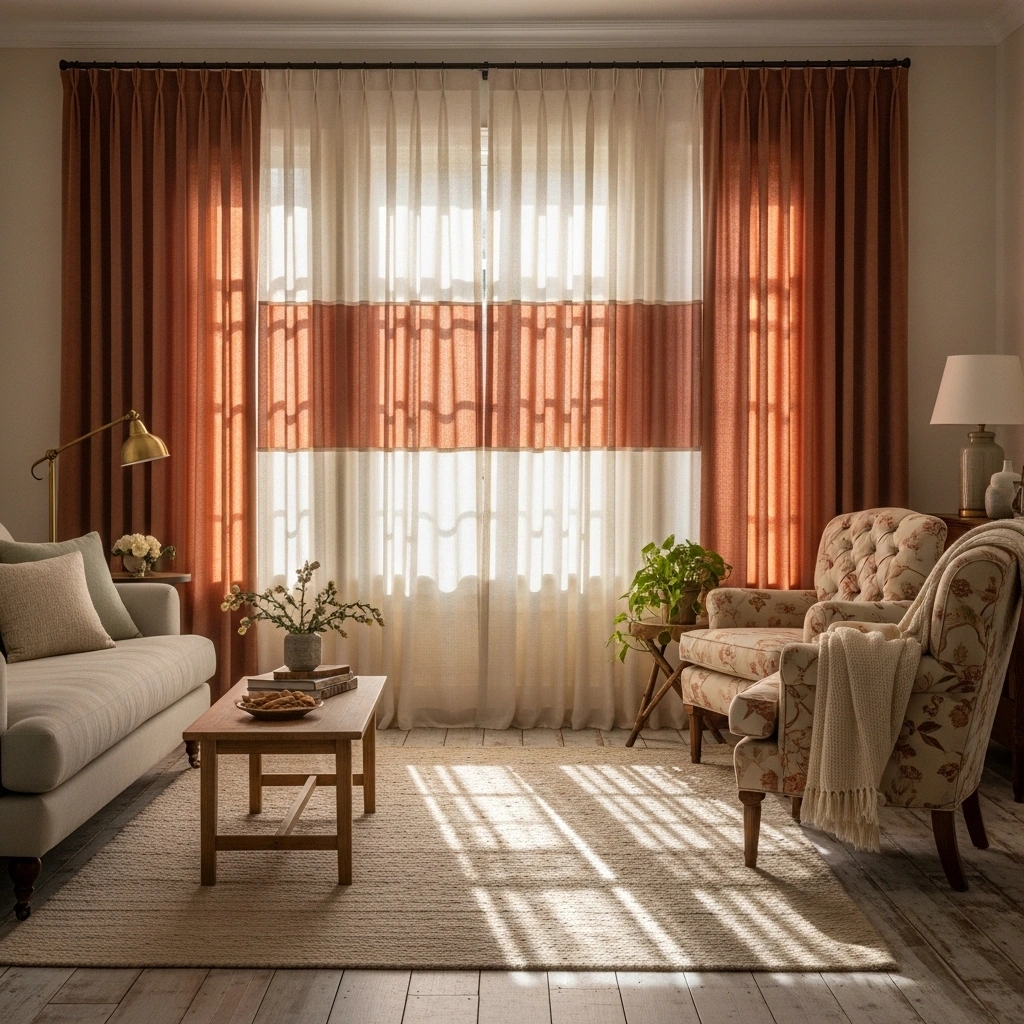 Tips for application: hang curtains slightly higher than the window frame to add height, and mix textures to create depth. Use tiebacks or brass hooks to keep the look casual yet polished, and coordinate with cushions or rugs for cohesive vintage styling.