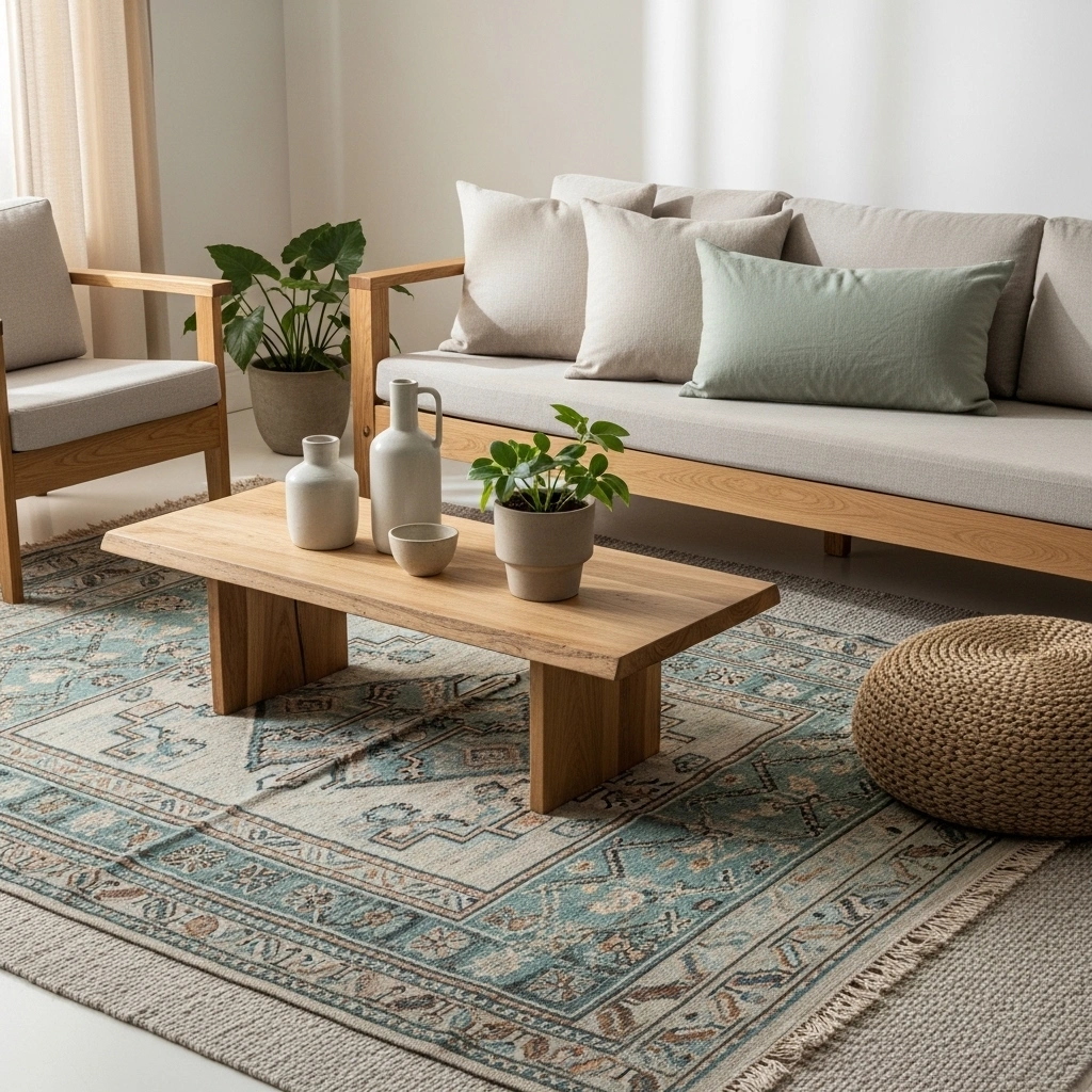 Rugs define zones and anchor furniture while enhancing vintage charm. Persian, Turkish, or handwoven rugs bring pattern, color, and warmth underfoot. Layered rugs of different sizes and textures create visual interest and tactile appeal, making the living room feel curated and full of personality.