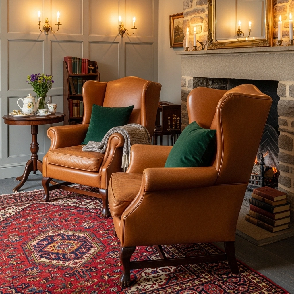 A single armchair can transform a corner into a story-filled nook. Wingback or barrel chairs in leather, velvet, or tweed instantly add personality. Tufted cushions, carved wooden legs, and subtle wear suggest a history that brings soul to the room. Soft lighting, like a nearby floor lamp, highlights the chair’s curves and texture, making it a focal point.