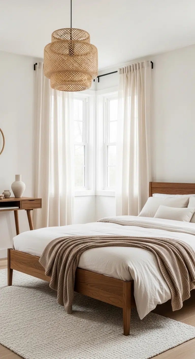 Keep walls white to reflect maximum light. Introduce brown through wood furniture and decor. Add a textured rug for softness. Use warm lighting instead of cool tones. Maintain minimal decor for clarity. This approach suits small bedrooms beautifully.
