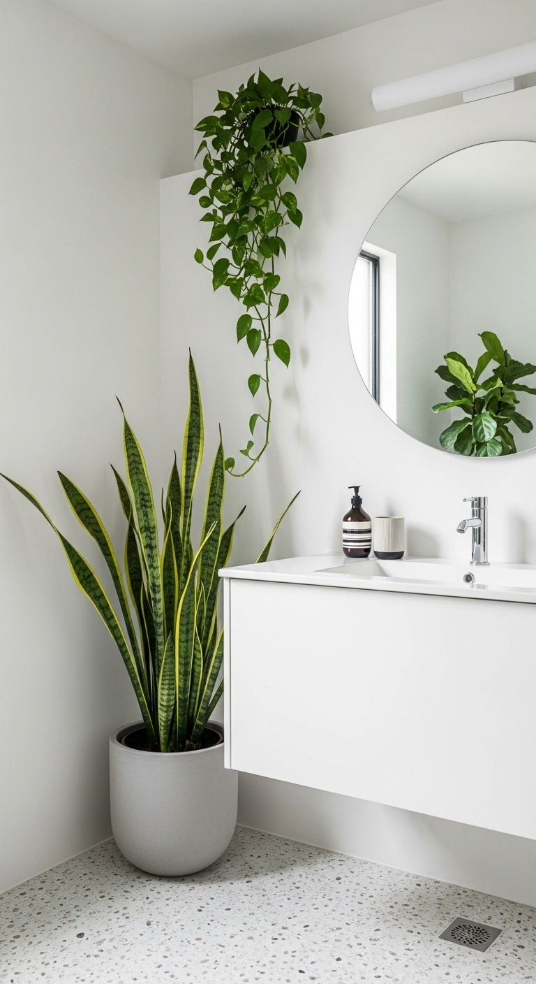 Choose low-maintenance plants like pothos or snake plants. Place them near windows for natural light. Use simple ceramic or woven planters for cohesion. Avoid overcrowding small bathrooms with too many pots. Hang trailing plants to save counter space. Keep watering schedules consistent for healthy growth. This natural touch completes any green bathroom decor scheme.