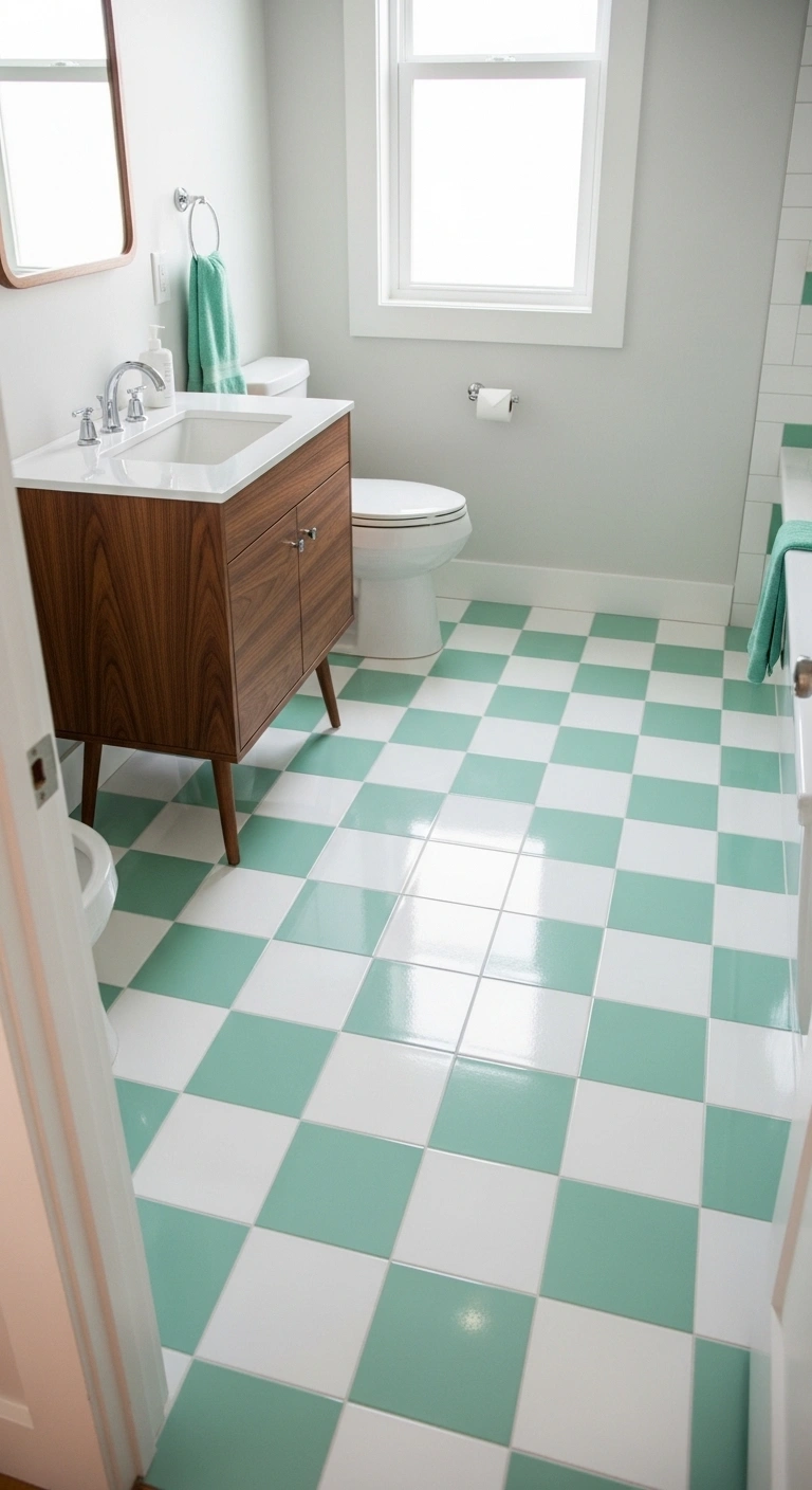 4. Mint Green and White Checkerboard Flooring