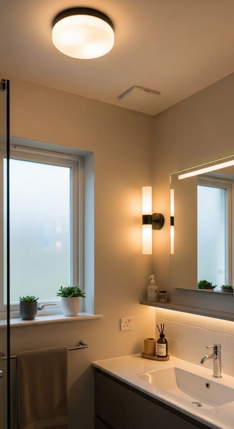 Lighting changes how your bathroom looks and feels. In a small space, layered lighting adds depth and removes dark corners. Use a mix of overhead lights, wall lights, and soft accent lighting.Start with a bright ceiling light to cover the whole room. Then add wall sconces beside the mirror for even face lighting. This helps during daily routines and reduces shadows.