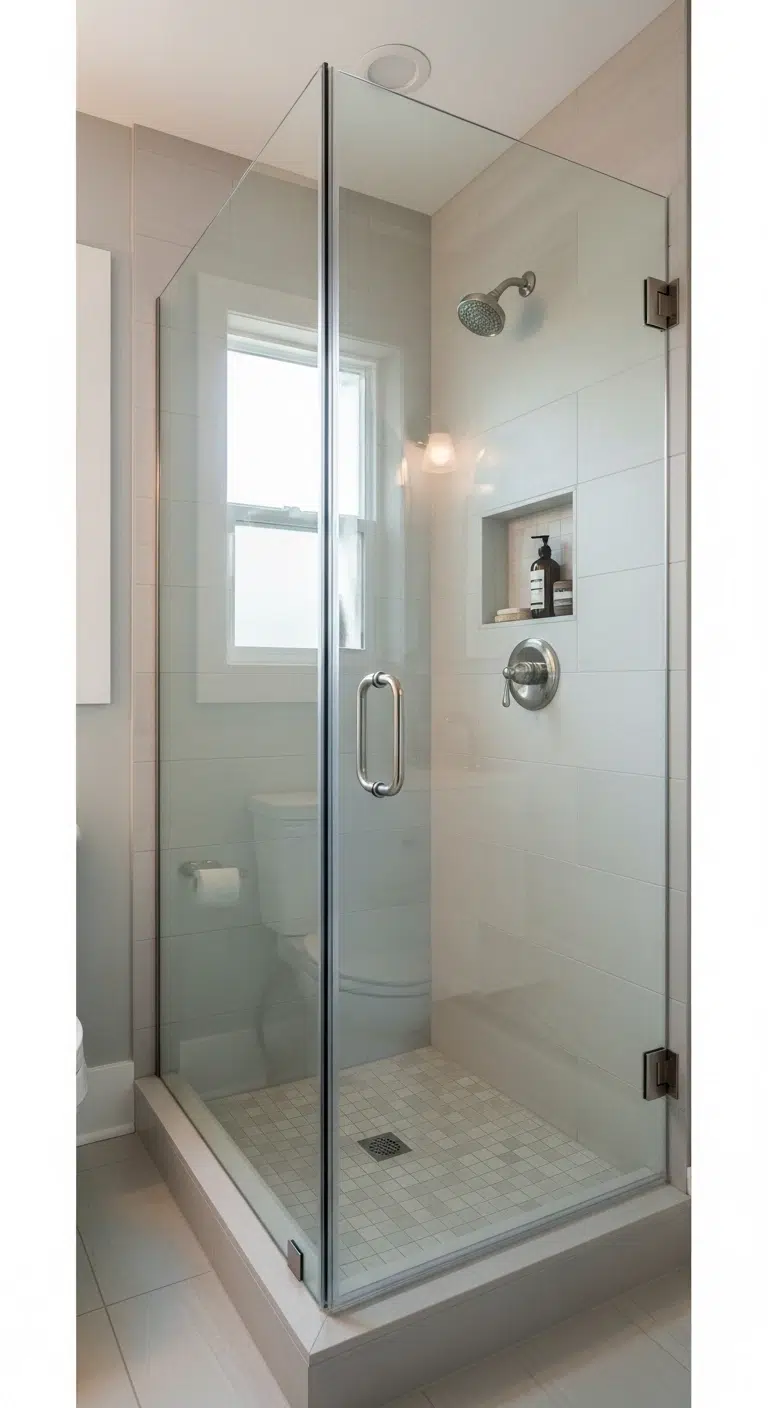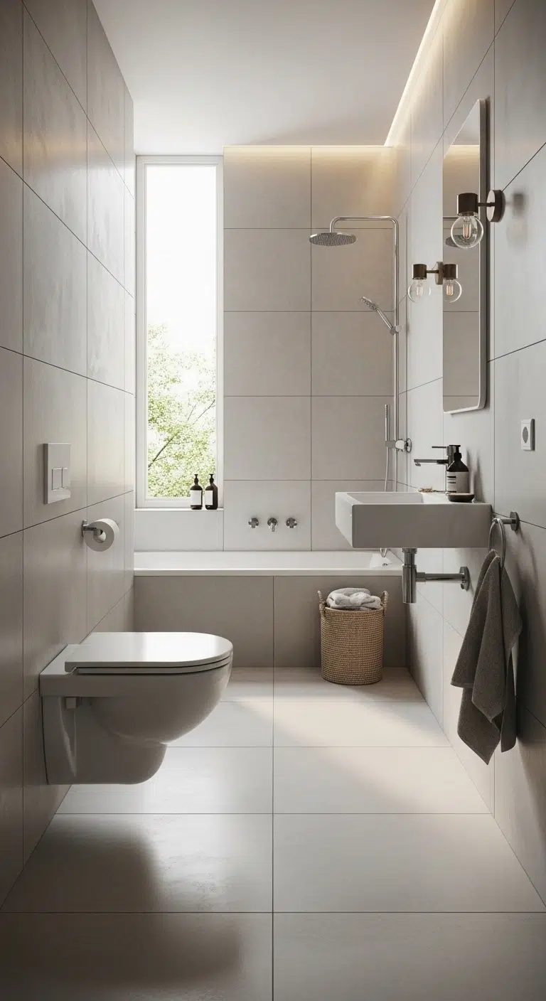Keep tiles inside the shower consistent with the rest of the bathroom. This creates a seamless flow that makes the room feel larger.Add a small niche inside the shower wall for storage. This removes the need for bulky racks or shelves.This idea works perfectly for anyone looking for small bathroom ideas that save space and look stylish with a minimal design approach.