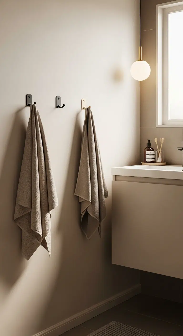 Hooks also allow towels to dry faster because air can move around them. You can even use double hooks for added function.This small change improves both usability and design. It keeps your bathroom neat while saving wall space.
