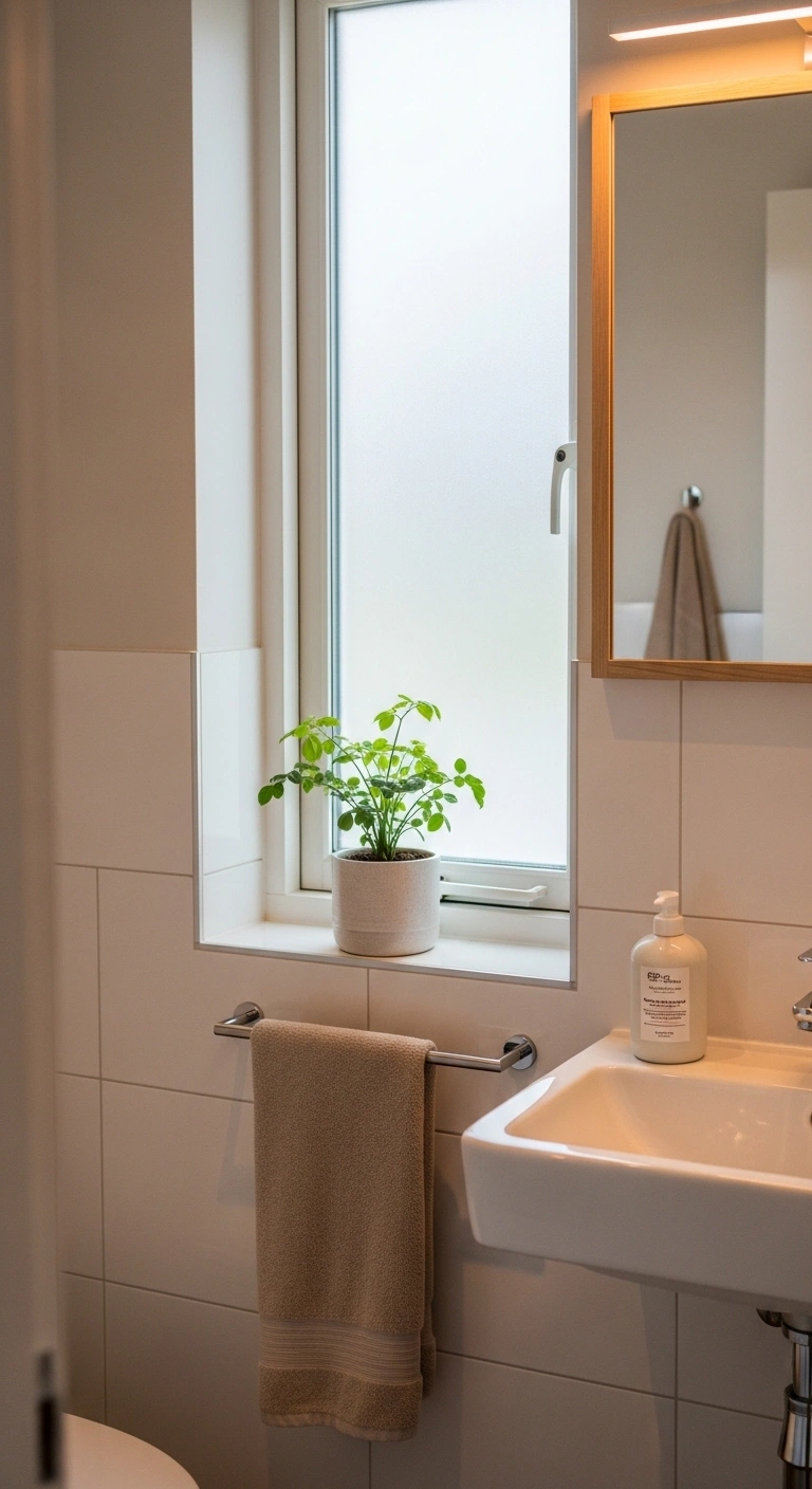 If natural light is limited, you can use realistic artificial plants. They still add a fresh look without maintenance.Keep the styling minimal. One or two plants are enough to make an impact.This idea adds a soft, calming element that makes your bathroom feel more welcoming.
