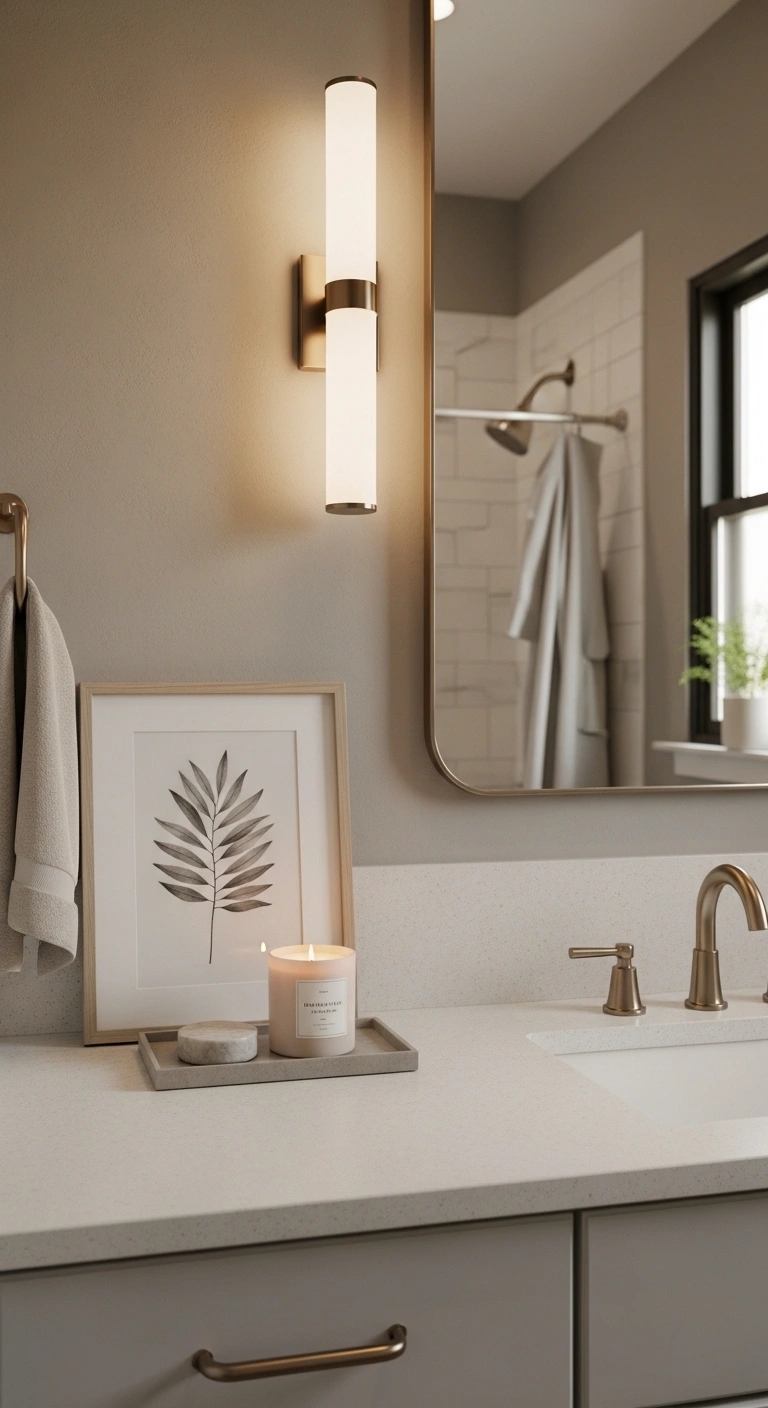 Minimal decor works best in small bathrooms. Too many items can make the space feel crowded. Instead, choose a few meaningful pieces that add style.Focus on quality over quantity. A single framed print, a candle, or a small decorative tray can be enough. Choose items that match your color palette and overall design.