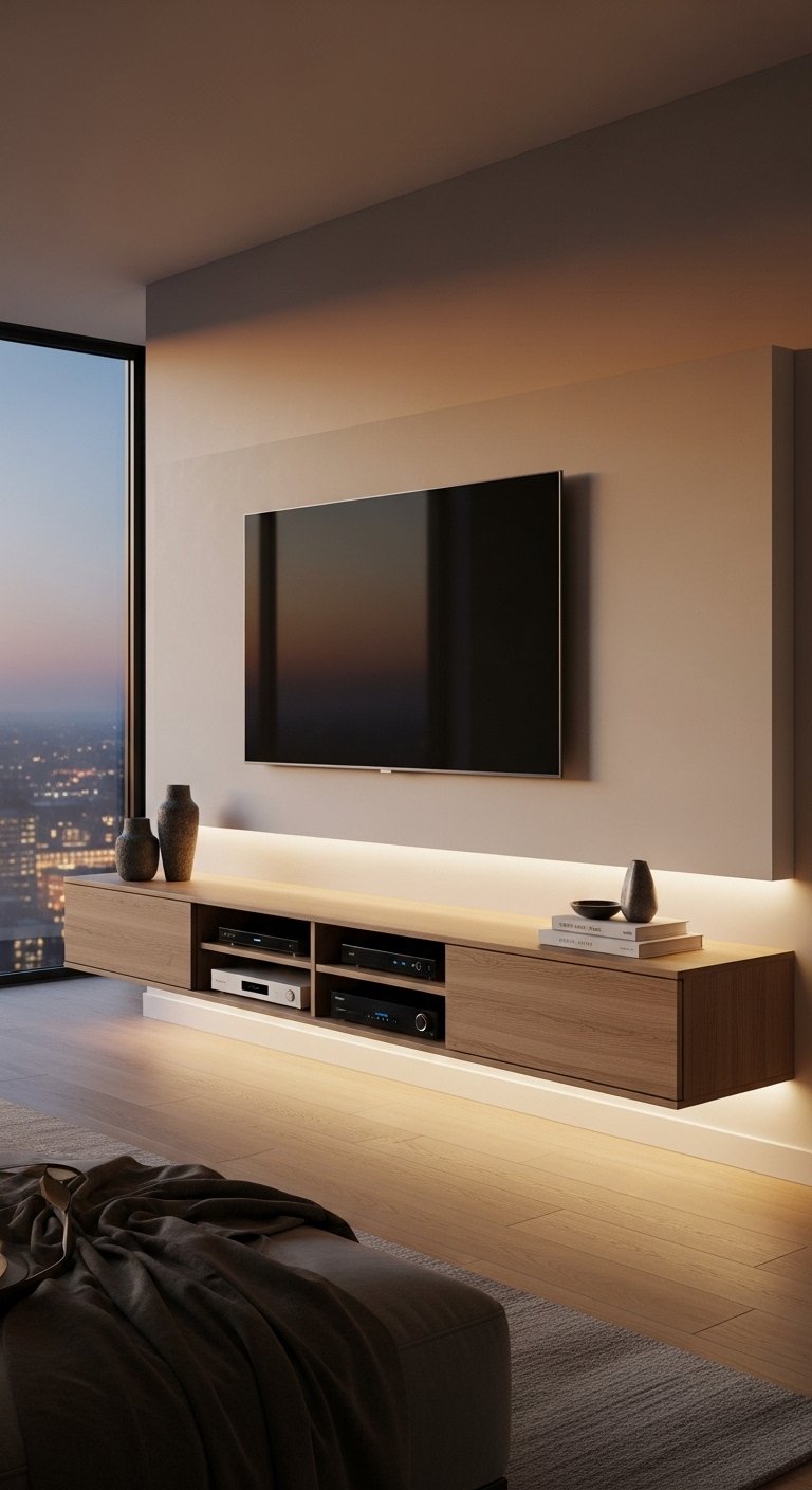 18. Slimline Media Wall with Hidden Storage