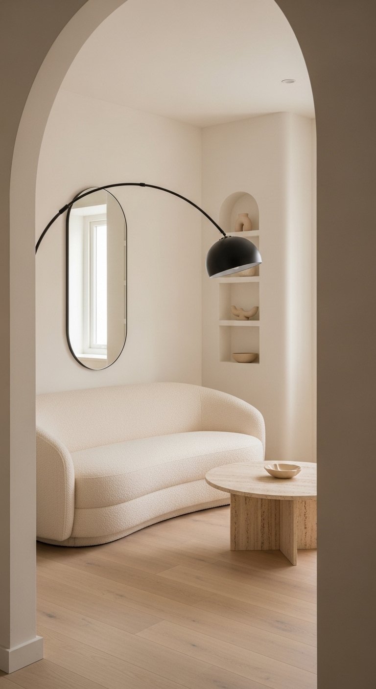 Scandinavian design often uses straight lines, but soft curves add warmth. Choose a round coffee table instead of a square one. Add a curved armchair or arched floor lamp. Include circular mirrors or oval artwork frames. These shapes soften the clean structure of the room. The space feels more relaxed and inviting. It creates visual movement without clutter.