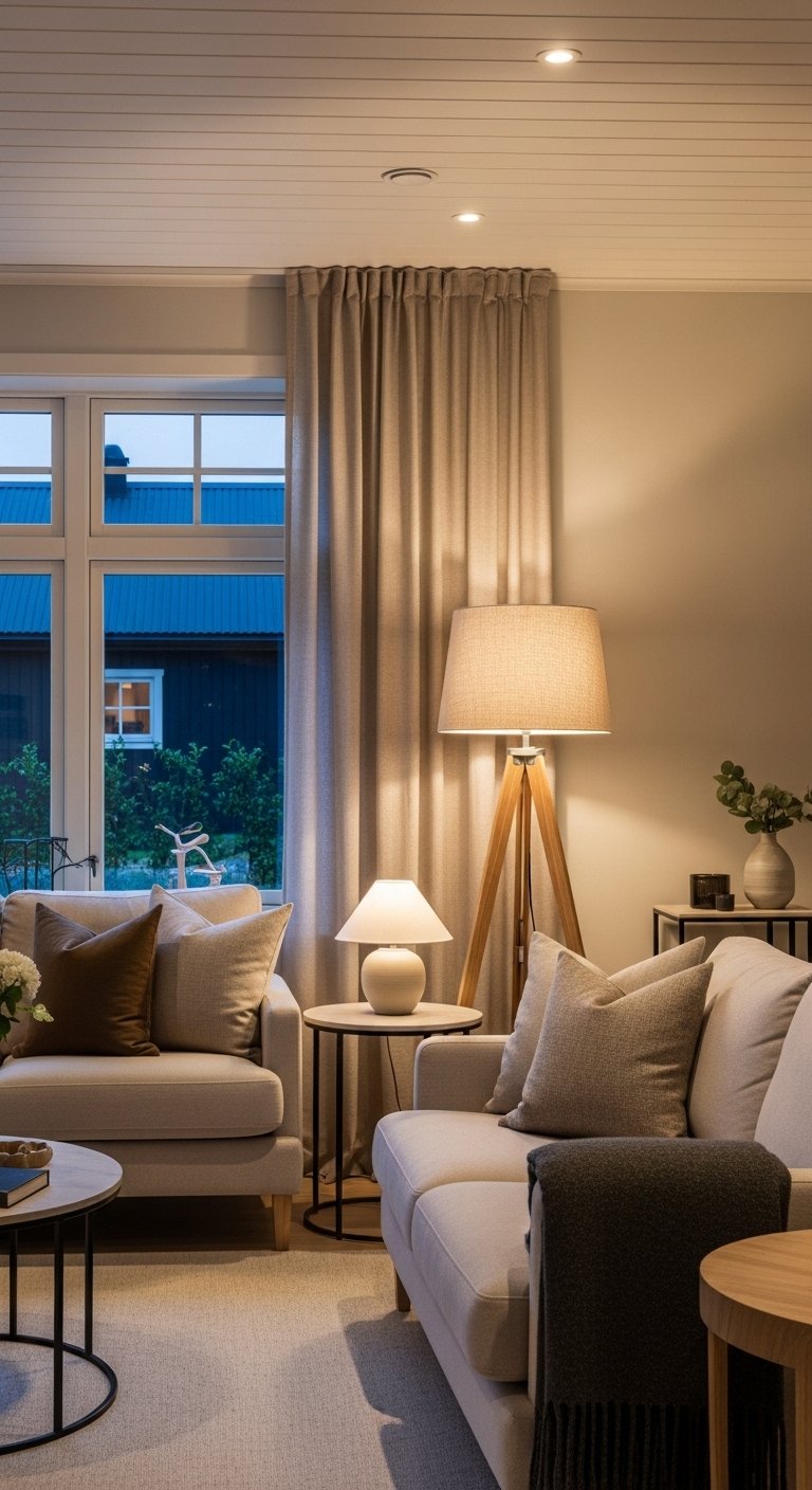 Layered lighting transforms your Scandinavian living room ideas into reality. Use ceiling lights, floor lamps, and table lamps together. Choose warm bulbs for a cozy evening glow. Place lamps at different heights around the room. Light should feel soft and welcoming, never harsh. The space becomes comfortable from morning to night.