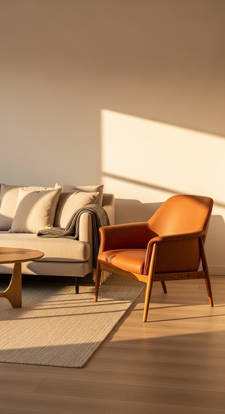 To apply this idea, mix one curved piece with mostly straight furniture. Avoid overloading the room with too many round items. Keep materials natural like wood, linen, and matte metal. Place curved pieces where you want to draw attention. Balance them with neutral colors. This small design shift makes your living room feel more modern and thoughtful.
