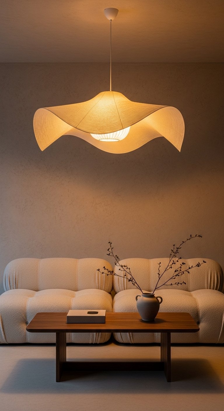 To apply this idea, center the pendant above your coffee table for balance. Choose a design with soft curves or natural materials like paper or fabric. Add table lamps on side tables to create layered lighting at different heights. Avoid harsh overhead lighting alone. Use dimmers to control the mood throughout the day. Good lighting transforms even the simplest Scandinavian design into something special.