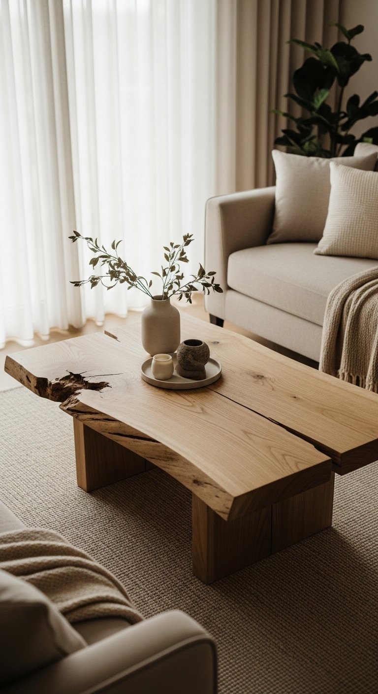 8.Natural Wood Coffee Table as a Focal Point