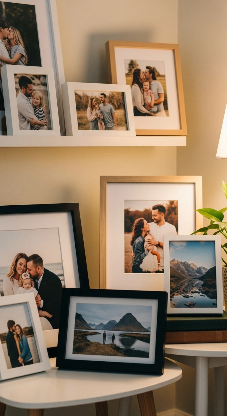 Use framed photos subtly. Place them in key spots. Avoid overcrowding walls. Choose simple frames. Keep colors soft. Rotate photos occasionally. This idea feels heartfelt.