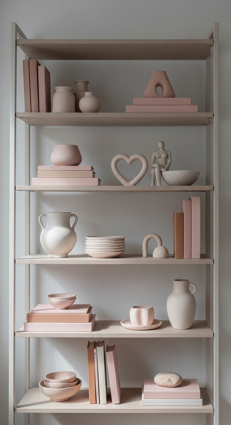 Shelves are perfect for subtle Valentine décor. Small objects feel intentional. Soft colors keep balance. Negative space avoids clutter. Shelves look styled but clean. Romance feels understated. The room stays functional.