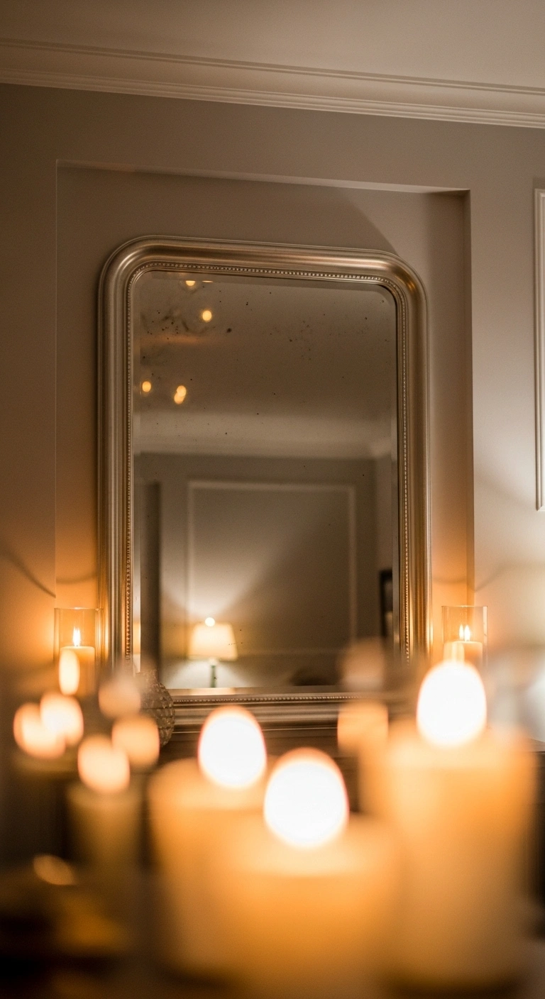 Use mirrors with soft frames. Add small décor nearby. Avoid heavy decorations. Place mirrors near light. Keep surrounding colors neutral. Clean mirrors regularly. This idea feels subtle yet powerful.