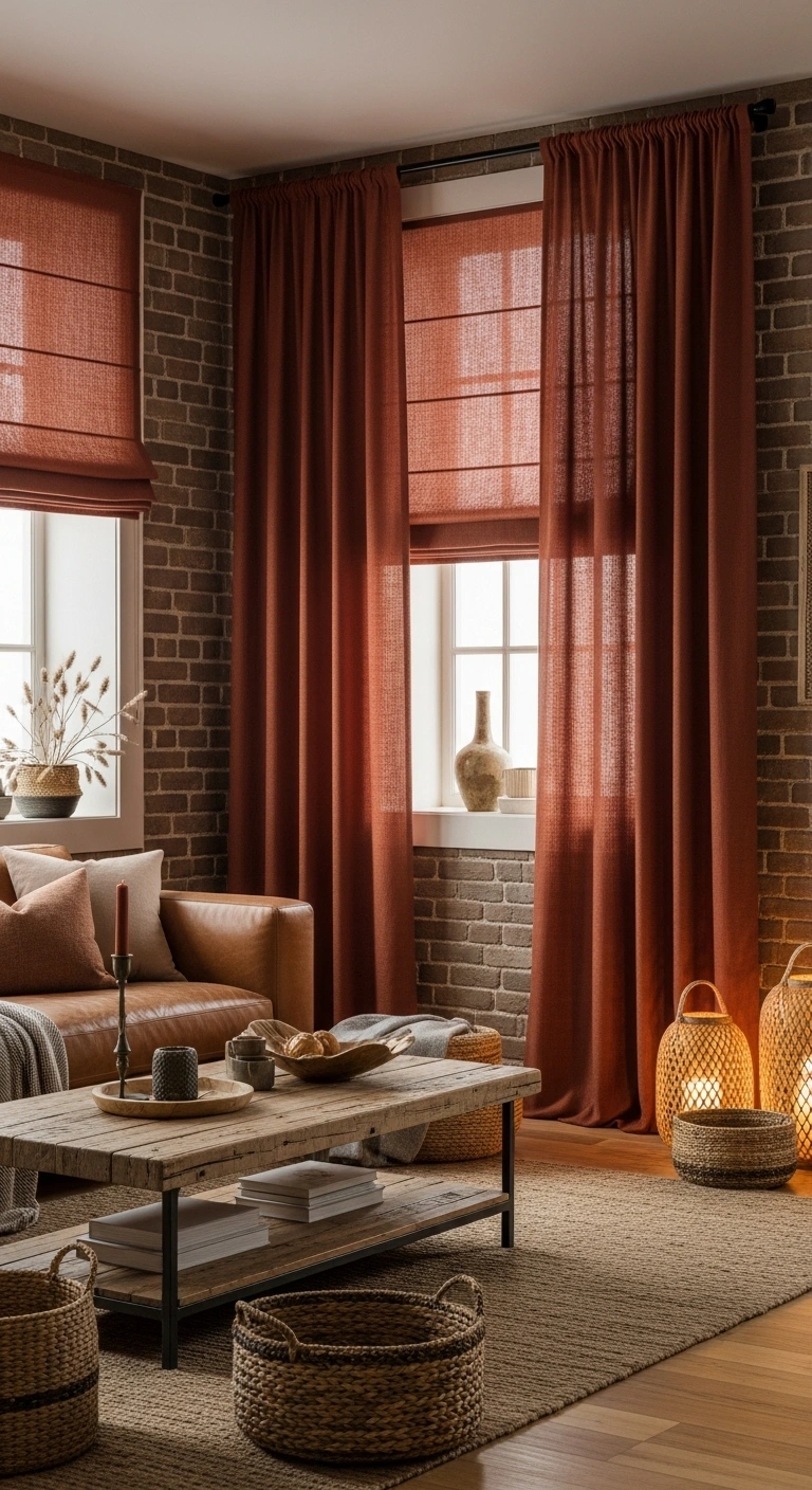 10. Roman Curtains in Earthy Tones for a Grounded Look