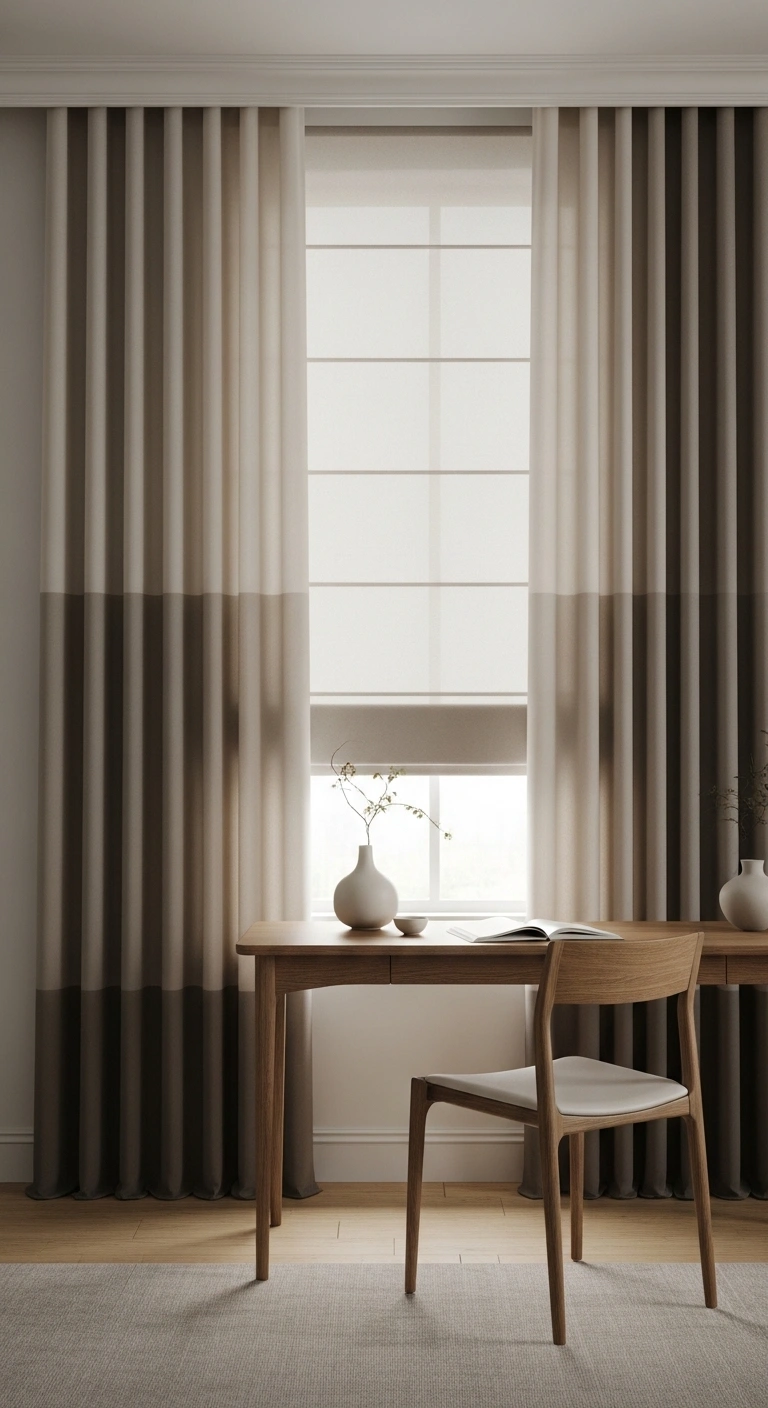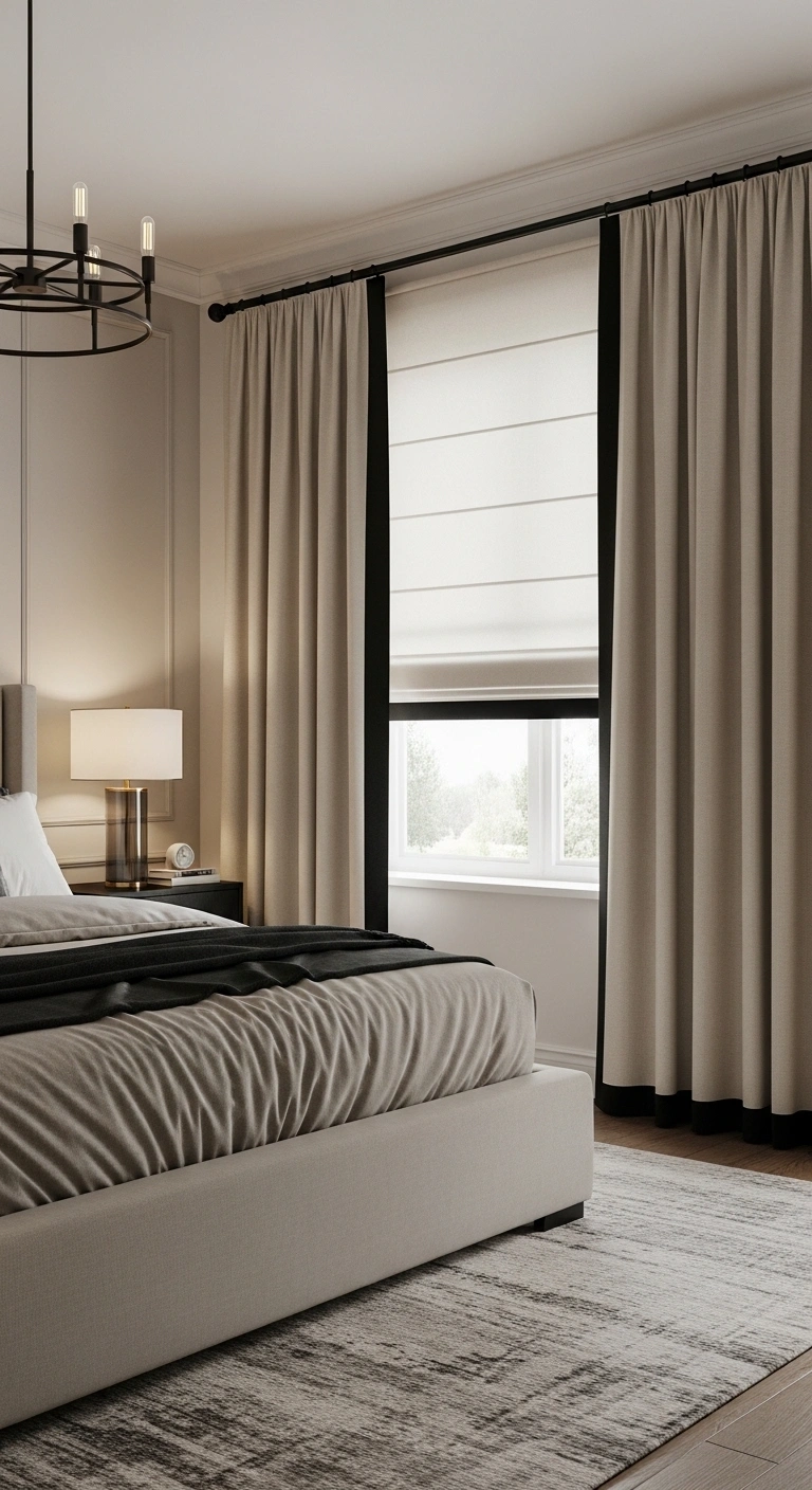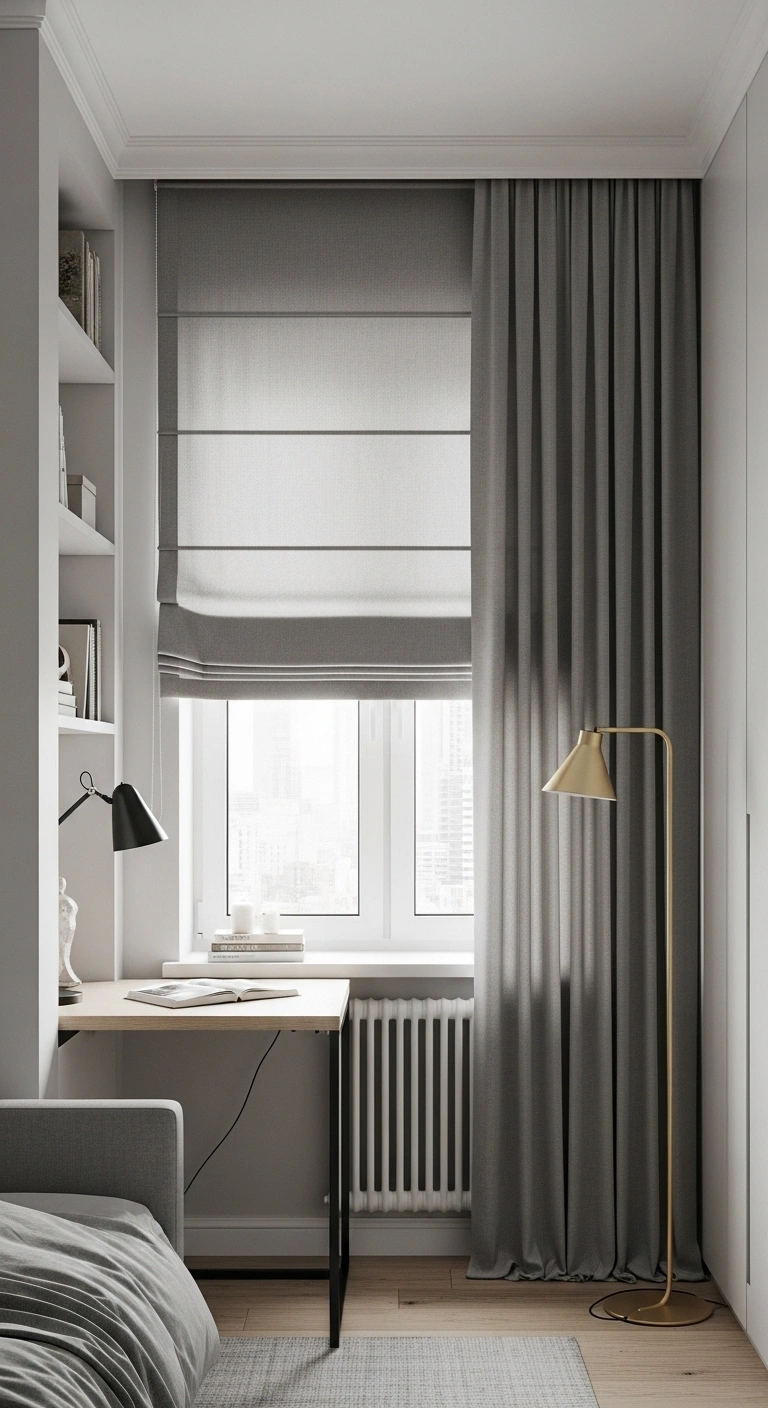 11. Dual-Tone Roman Curtains for Subtle Contrast