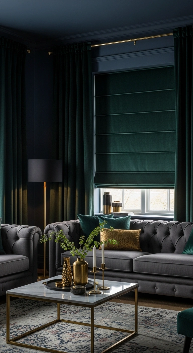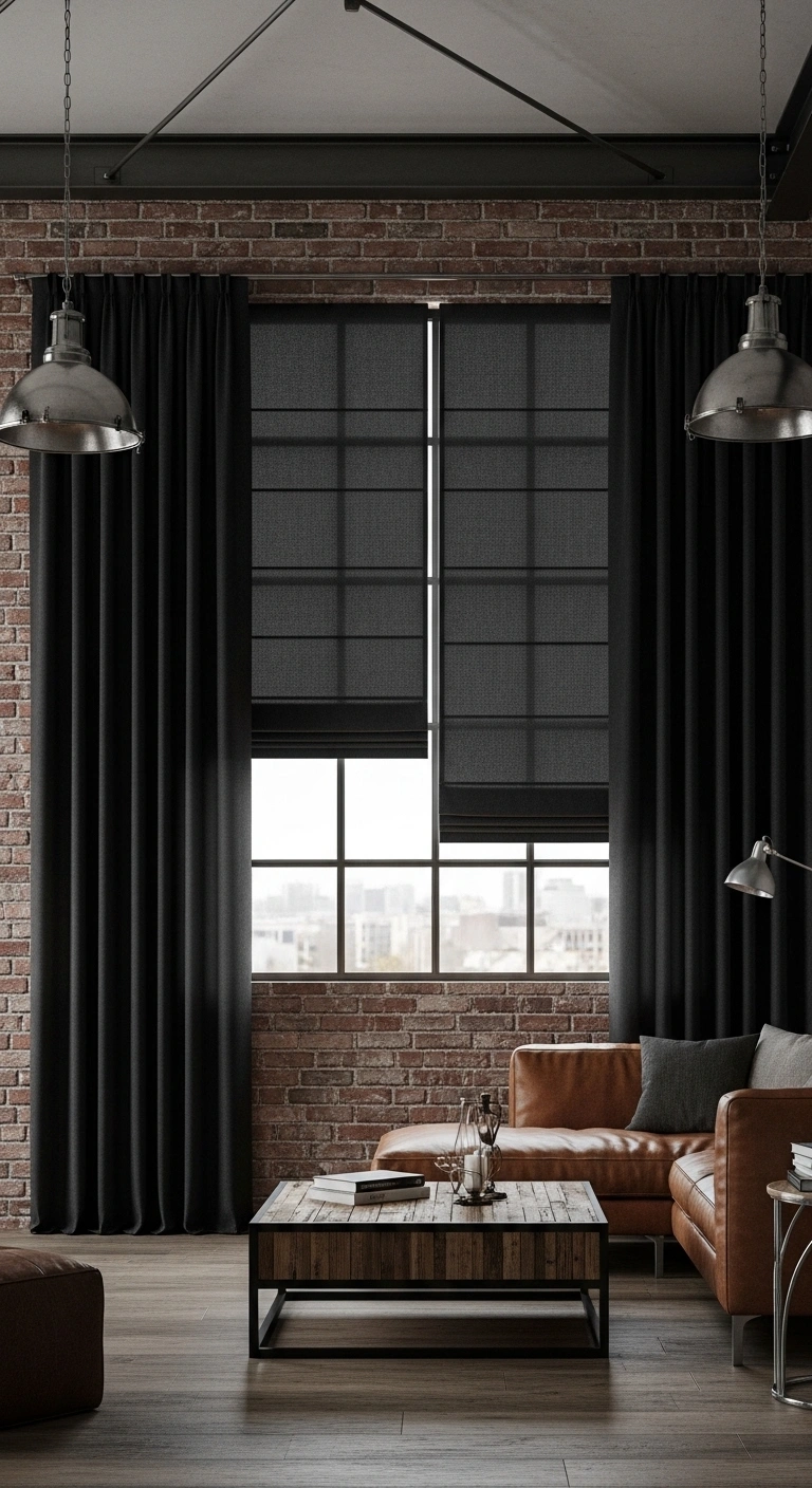 20. Dark-Toned Roman Curtains for Dramatic Contrast