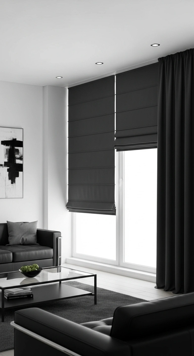 5. Monochrome Roman Curtains for a Clean Modern Style