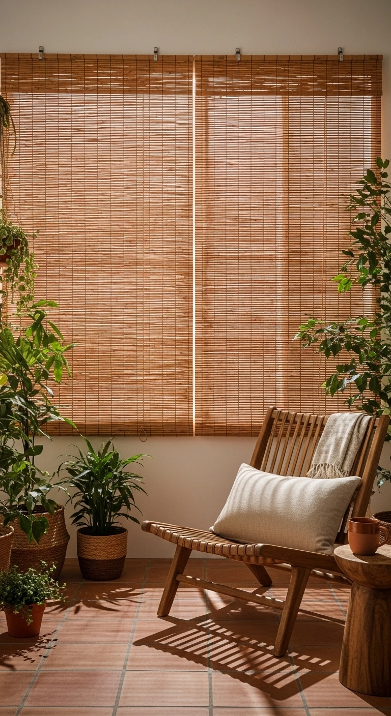For better light control, add a fabric liner behind the bamboo. This keeps the natural look while improving privacy. The texture adds interest without needing extra decoration.