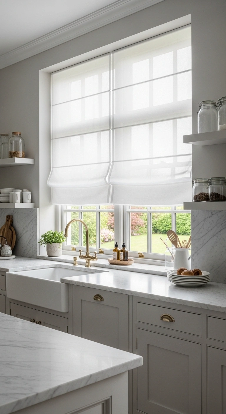 9. Sheer Roman Curtains for Soft Light Diffusion