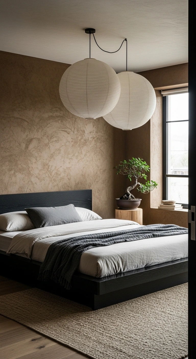 Choose a platform bed without a bulky headboard. Add a large piece of art above to maintain vertical interest. Use under-bed storage drawers to hide clutter. Pair with slim pendant lights instead of table lamps. This layout trick visually expands tight spaces.